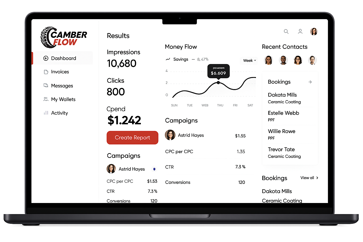 "The team at Camber Flow completely transformed our lead generation. Within the first month, we saw a huge increase in ceramic coating and PPF inquiries. Their communication, reporting, and professionalism are unmatched.”